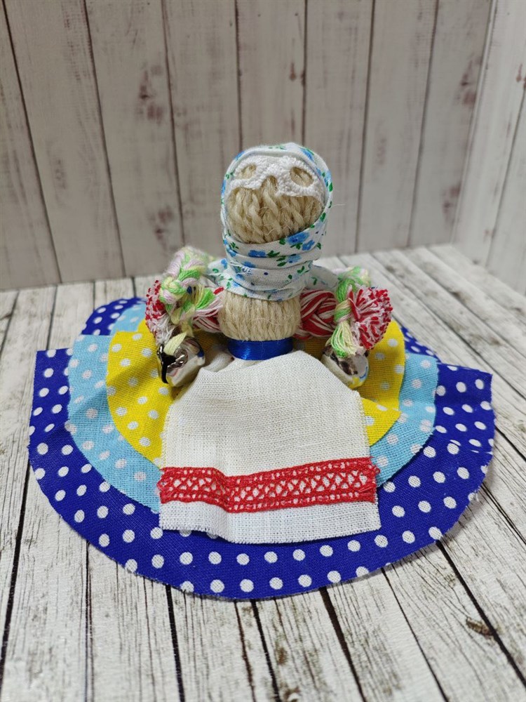 Колокольчик это оберег-мотанка, который охраняет дом и его обитателей от дурных вестей. Появилась кукла на Валдае — родине маленьких колокольчиков, которые принято было крепить под дуги конских повозок. Будучи уменьшенной копией церковных колоколов, они считались оберегами, способными отгонять злые силы и болезни.