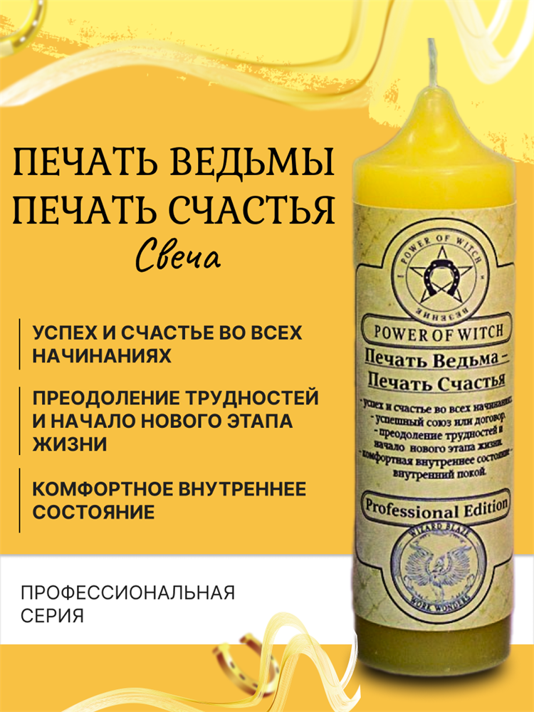 Свеча Печать Ведьмы – Печать Счастья приносит успех в вашу жизнь, обеспечивает победу над ситуацией. Зажгите свечу с соответствующим намерением и вы получите желаемое.