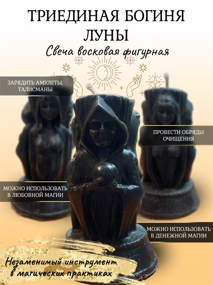 Фигурная свеча в виде Триединой Богини незаменимый инструмент в магических практиках, с ее помощью вы можете