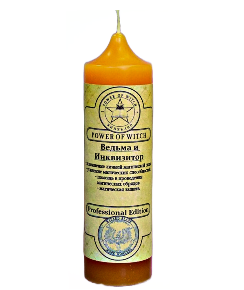 Свеча Ведьма и Инквизитор создана для повышения реализации магического действия. Она может использоваться как алтарная или вспомогательная свеча, усиливая концентрацию, помогая высвободить максимум энергии, создать необходимые связи с силами и явлениями астрального мира.